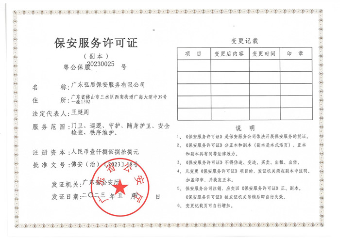 保安服務許可證副本